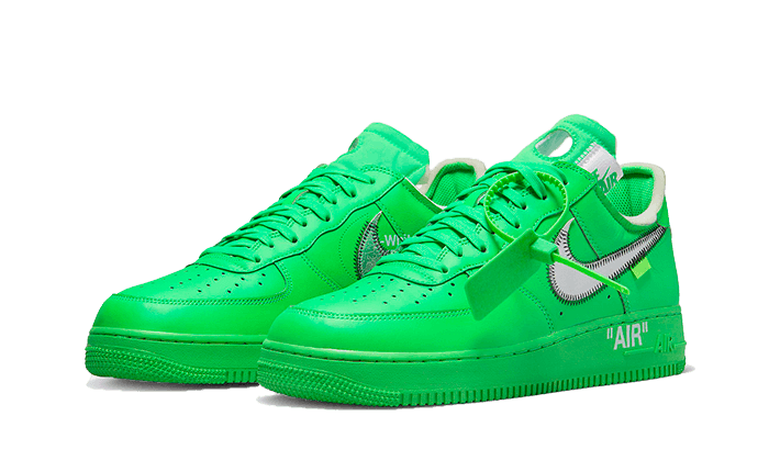 Là Nike Air Force 1 Low Off-White Leggero Green Scintilla indossa una base in Pelle verde fluente che copre l’intera struttura. La sua scheda in schiuma è perforata come il Dunk Off-White. I pannelli laterali sono adornati con a Argento swoosh con finitura leggermente crepita. Diverse cuciture nere arrivano per circondare il marchio non strutturato Fluo Green Tag. Iscrizione “AIR” Blanche adorna la suola monocromatica e segna la firma industriale del designer deceduto.