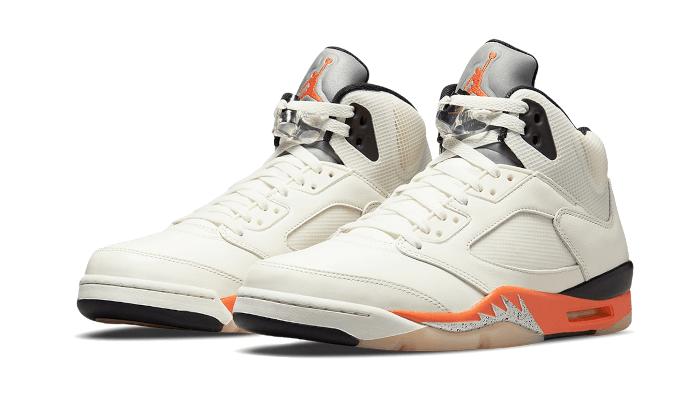 La Air Jordan 5 Orange Blaze (Shattered Backboard) ha una base sviluppata in pelle bianca, rialzata da una rete in TPE semi-traslucida sul pannello laterale, lacci bianchi, così come accenti arancioni e neri sulla linguetta. La fodera interna e la suola intermedia, ricordano le varianti Shattered Backboard , mentre una suola ghiacciata ha finalizzato il design di Tinker Hatfield.Un’uscita che dovrebbe far sorridere i fan della modella.