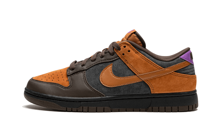 È in una nuova versione a Finiture premium E colori autunnali Che viene rivelata la silhouette di punta dello swoosh, come per annunciare la nuova stagione che si avvicina. Là Nike Dunk Low Sidro PRM è costituito da una parte superiore che mescola pelle liscia e pelle scamosciata e una tavolozza alternativa di colori autunnali: cioccolato, ocra marrone E nero. Gli accenti di viola nel tallone e Tab portano un tocco ACG. Una suola a due colori, nera e marrone finalizza il tutto. Questo nuovo colore completa la gamma di Nike Dunk Low, in uno stile ma mai visto ma ricordando le finiture delle versioni Impiallacciatura, Ceramica, O Olive Brown Orange.