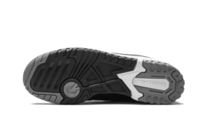 Il New Balance 550 Shadow presenta una base in pelle nera con alcuni dettagli grigi sul toebox e sul colletto della coppia. Il design rifinito con alcuni tocchi di bianco, qui sui marchi e sull’intersuola.