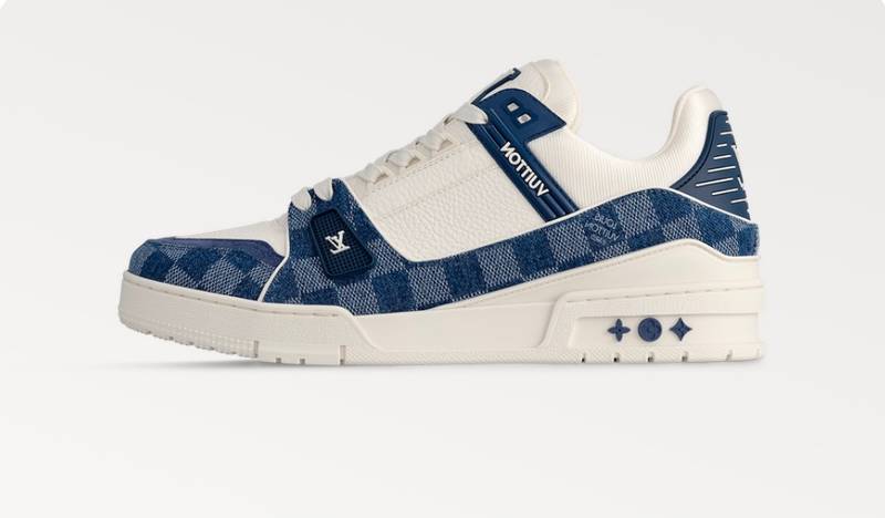 La sneaker LV Trainer accosta l’emblematico denim con motivo Damier alla pelle di vitello. L’esclusiva calzatura, ideata da Virgil Abloh, si distingue per l’elaborata tomaia che richiede sette ore di meticolosa lavorazione. Le iconiche firme della Maison e la suola tecnica, realizzate in gomma, completano il classico modello di Louis Vuitton.